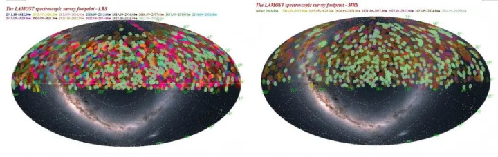▲足下离别为LAMOSTDR13的低分辨率天区解除图、均分辨率天区解除图