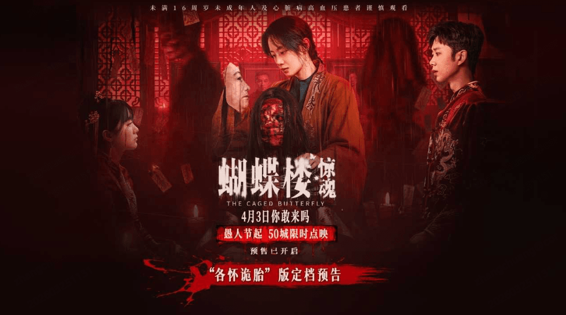电影《蝴蝶楼·惊魂》由广州超乐无穷影业有限公司、中国电影产业集团股份有限公司、天津猫眼文化传媒有限公司、万达影视传媒有限公司、浙江横店影业有限公司、安徽电影集团有限职守公司(安徽电影制片厂)、上海儒意影视制作有限公司、沈阳都得隆咚强影业有限公司、广东山里果子红了科技文化发展有限公司、无锡六吉影业有限公司、北京超行文化传播有限公司出品,上海猫眼影业有限公司、北京超乐无穷影业有限公司、海南盛夏改日文化传媒有限公司、天津山崎影业有限公司、深圳火尚影视传媒有限公司、归乐文化(北京)有限公司、瑞画(杭州)影视文化有限公司、广州超行文化传播有限公司辘集出品。影片已开启预售,将于4月3日宇宙上映。愚东说念主节起,50城限时点映。